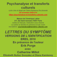 Psychanalyse et transferts culturels : Lettres du symptôme. Versions de l'Identification érès, 2010. En présence de l'auteur Erik Porge avec Catherine Millot, Elizabeth Nuñez Gonzalez et Diana Kamienny.
