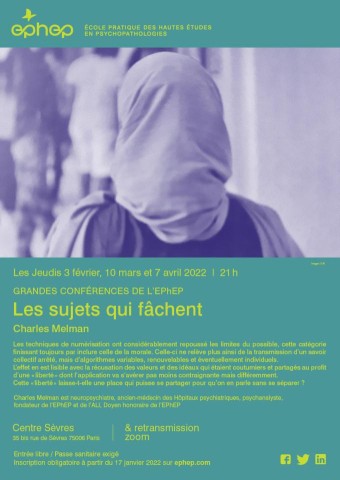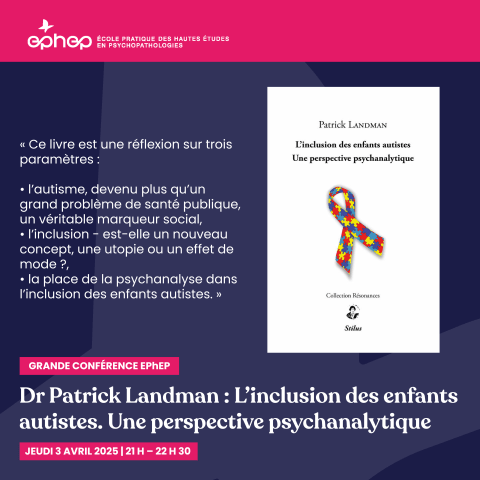 Les Grandes conférences de l’EPhEP donnent la parole à des personnalités éminentes des différents domaines touchant à la psychopathologie, tant subjective que collective, désireuses d'offrir leurs propositions et leurs avancées à la discussion et à l'élaboration dans le dialogue.